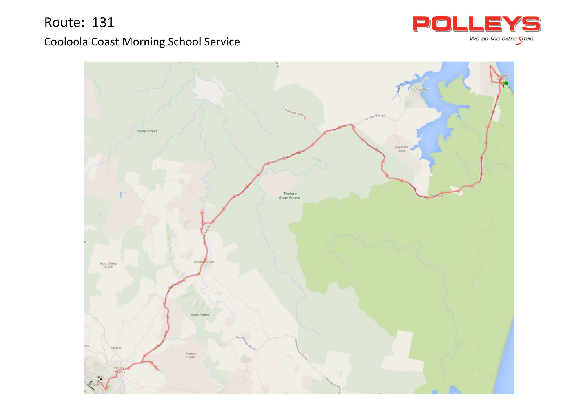 • Route 131 – Cooloola Coast Morning School Service